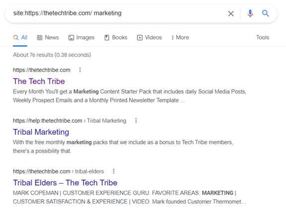 One more way that you can leverage this search tip is to look for competitors by entering your own website URL in the search.